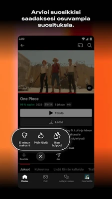 Netflixin alati kasvava sisältökirjasto päivittyy jatkuvasti uusilla ja odotetuilla nimikkeillä. Selaa vaivattomasti tuoreimpia lisäyksiä, sukella kategorioiden syövereihin tai etsi täsmällisesti juuri sitä, mitä haluat katsoa – kaikki suoratoistona suoraan laitteellesi. Mitä enemmän käytät Netflixiä, sitä älykkäämmin se oppii ymmärtämään yksilöllisiä mieltymyksiäsi ja suosittelee juuri sinua kiinnostavia TV-sarjoja ja elokuvia, luoden henkilökohtaisen katselukokemuksen.
