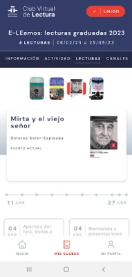 El Club virtual de lectura on Instituto Cervantesin e-kirjaston palvelu. Liity virtuaalisiin lukukerhoihin ja elokuvakerhoihin keskustellaksesi etänä espanjalaisesta ja latinalaisamerikkalaisesta kirjallisuudesta sekä espanjankielisestä elokuvasta. Jaa näkemyksiä muiden lukijoiden ja elokuvan ystävien kanssa nauttien yhteisestä intohimosta ja ajatustenvaihdosta.